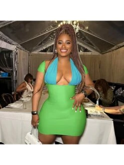 Colorblock,Contrast Color,Halter,Patchwork,Ruched,Color Matching,Pullover