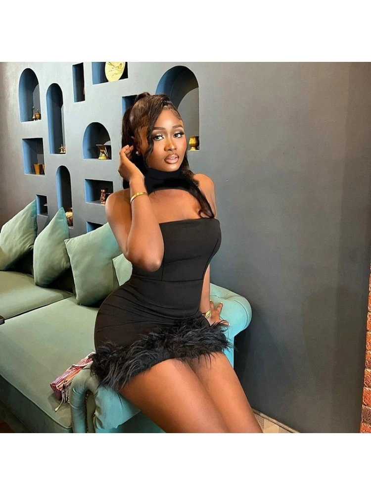 Feather,Halter,Hollow Out,Patchwork,Pure Color,Solid Color,Pullover