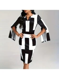 Colorblock,Contrast Color,Geometric Pattern,Irregular,Split Hem,Color Matching,Print