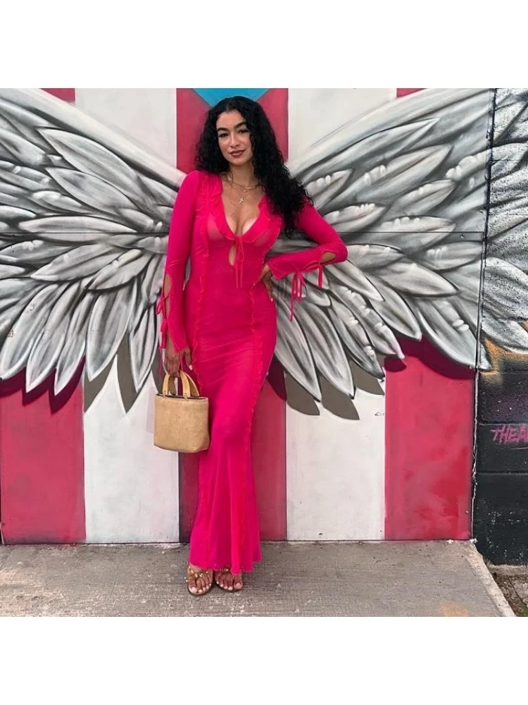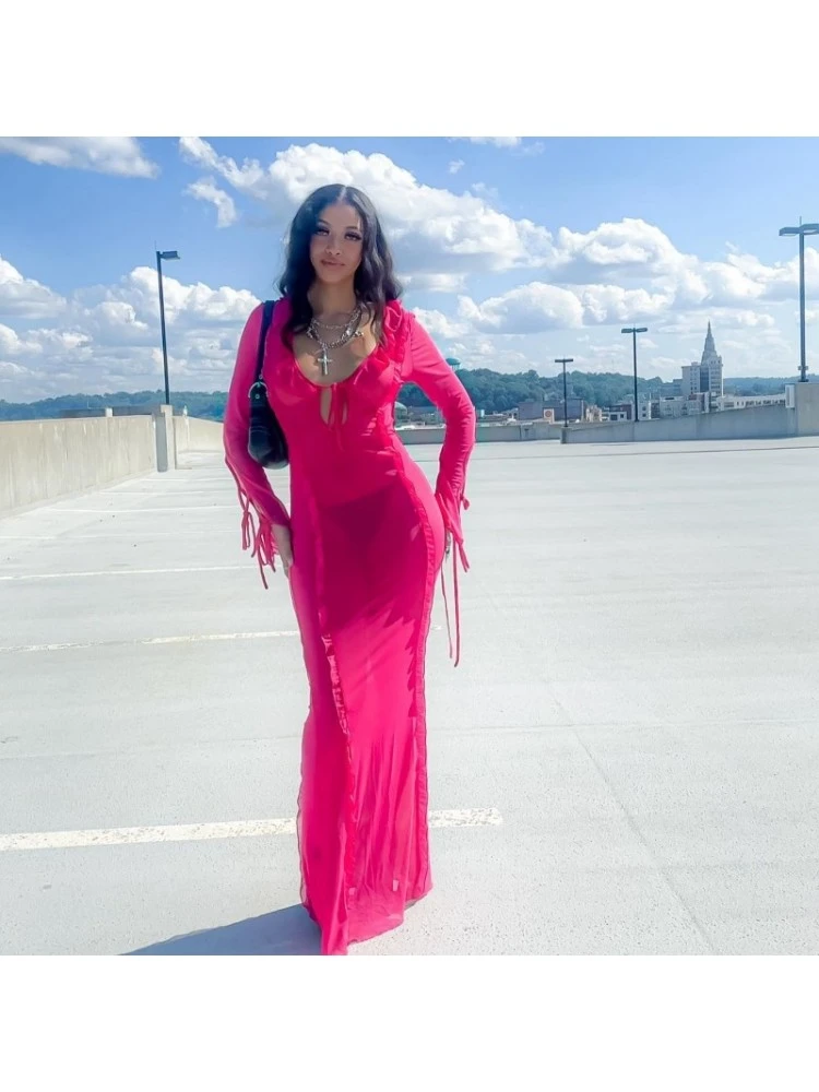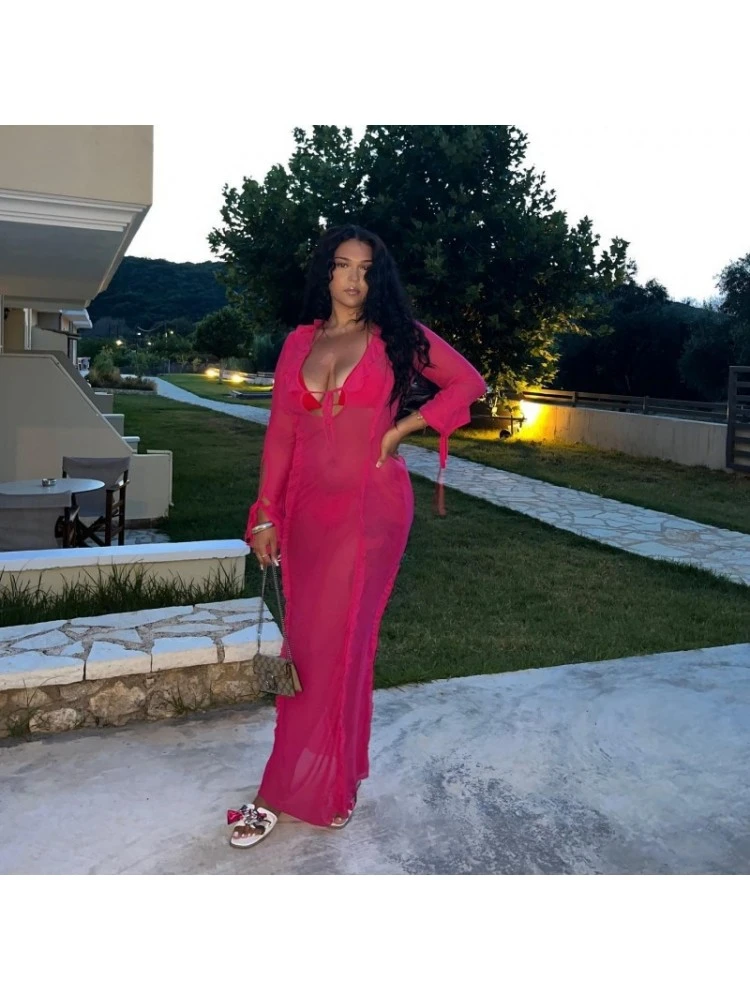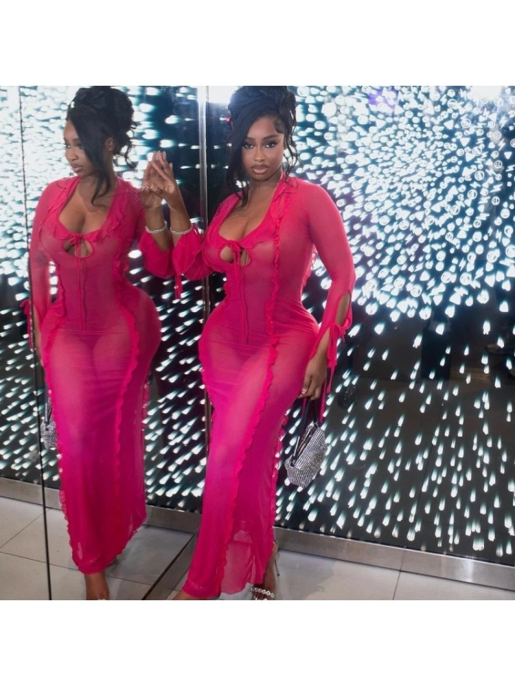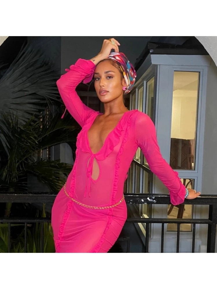 Lace Up,Patchwork,Pure Color,Tie-wrap,Solid Color,Plain Color,Ruffle Edge,Stringy Selvedge,Pullover,See Through