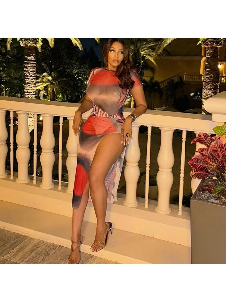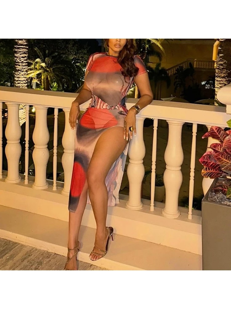 Split Hem,Pullover,See Through,Print