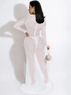 See Through Hollow-out Split Hem Backless Long Sleeves Dress