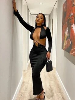 Geometric Pattern Gradient Color Office Lady Long Sleeves Dress