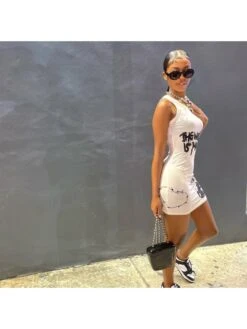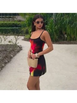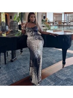 Women’s Casual Contrast Color Printing Sleeveless Long Dress